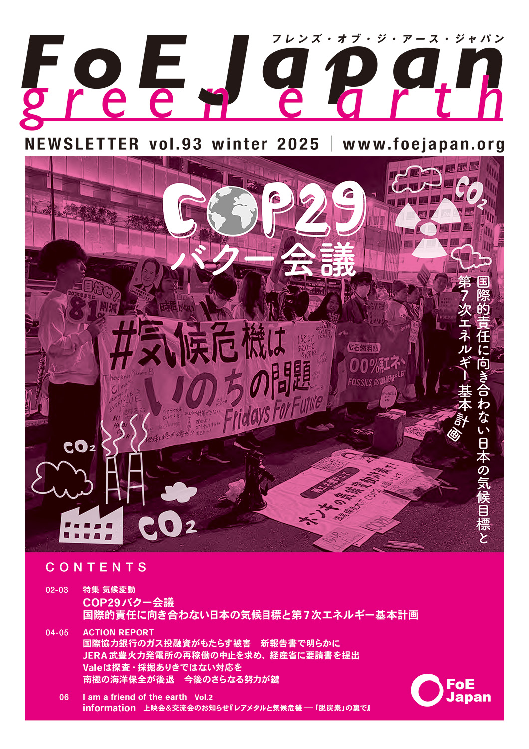 国際協力銀行のガス投融資がもたらす被害 新報告書で明らかに/JERA武豊火力発電所の再稼働の中止を求め、経産省に要請書を提出/Valeは探査・採掘ありきではない対応を/南極の海洋保全が後退 今後のさらなる努力が必要