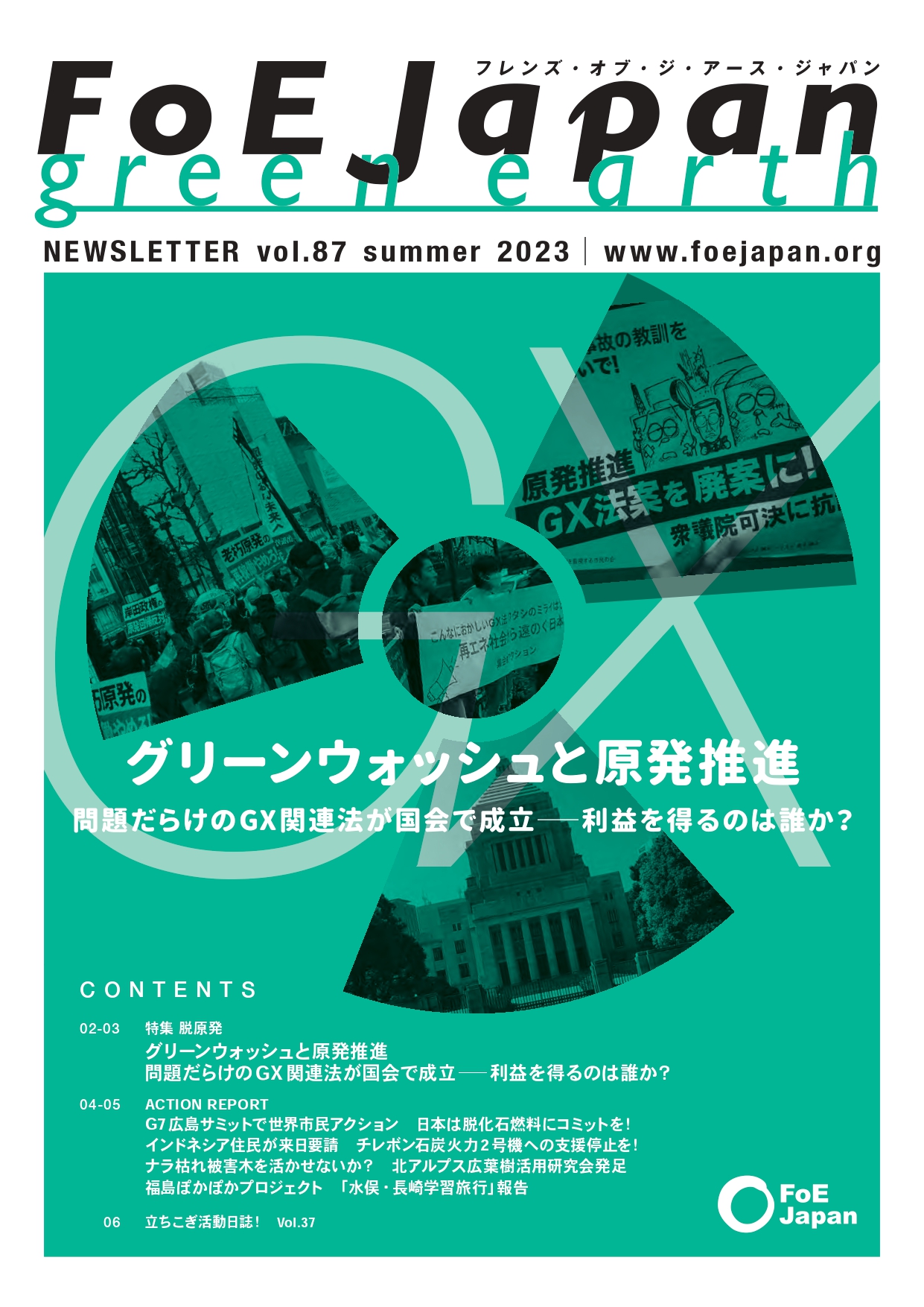 G7広島サミットで世界市民アクション、日本は脱化石燃料にコミットを!/インドネシア住民が来日要請、チレボン石炭火力2号機への支援停止を!/ナラ枯れ被害木を活かせないか?北アルプス広葉樹活用研究会発足/福島ぽかぽかプロジェクト「水俣・長崎学習旅行」報告