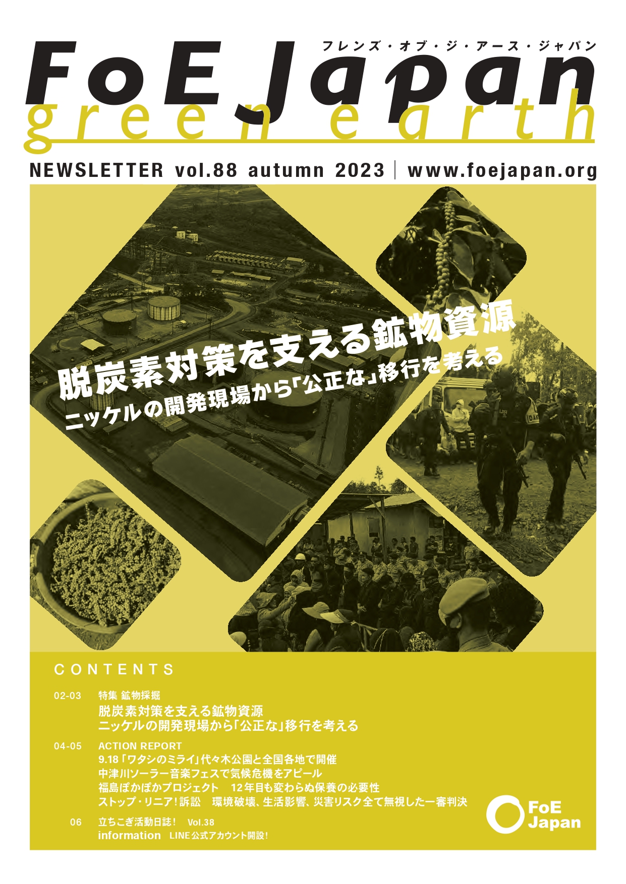 インドネシア・ニッケル拡張計画 Vale 株主に再要請「探査再開にNo!」/リニア工事「要対策土」の適切な処理を/日本で排出したCO2 を途上国に輸送? 日本のCCS政策の問題点/電力自由化から8年 再エネ転換の波をもっと大きく