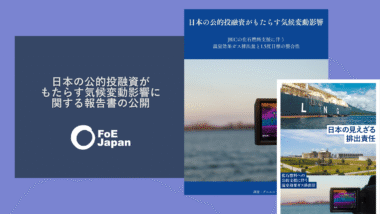 国際環境NGO FoE Japanは本日、近年拡大する日本のLNG転売に関する研究報告、加えて国際協力銀行(JBIC)による海外化石燃料事業に対する資金支援が伴う温室効果ガス排出量についての研究報告を発表しました。