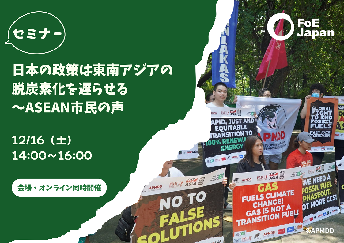 こうしたタングーLNG拡張計画は、化石燃料の利用を長期化させ、気候危機を悪化させる行為です。スマトラ島で起きたような災害が繰り返されるのを将来にわたり防いでいくためにも、同拡張計画は中止されるべきです。コミュニティのニーズに基づく、クリーンかつ持続可能な再生可能エネルギーへの移行こそが待ったなしで進められなくてはなりません。