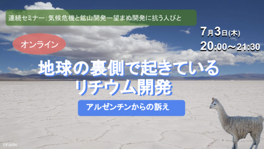 【鉱物資源ウェビナー】脱炭素の名の下に進むリチウム開発の負の実態~アルゼンチンでは今