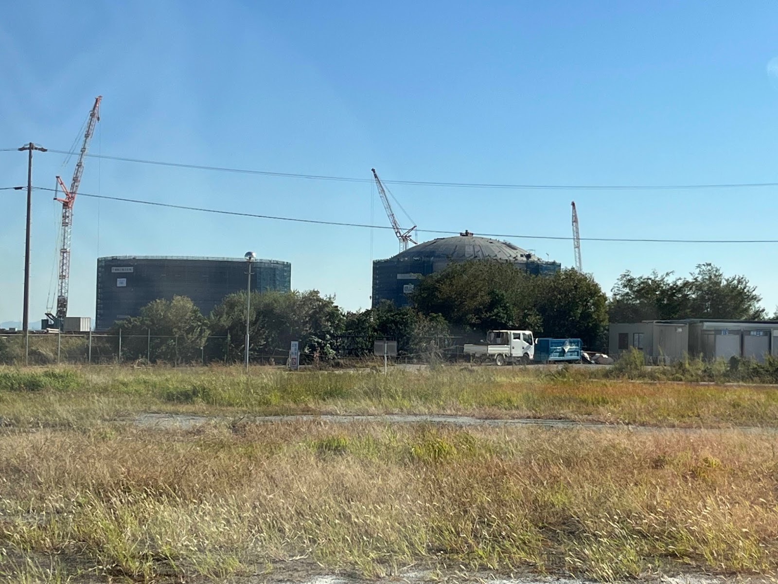 大量のアンモニアを貯蔵する為に、4万トンx4基の専用受け入れ貯蔵タンクを建設する必要があります。碧南では実際にアンモニア貯蔵専用タンクが4基建設中でした。