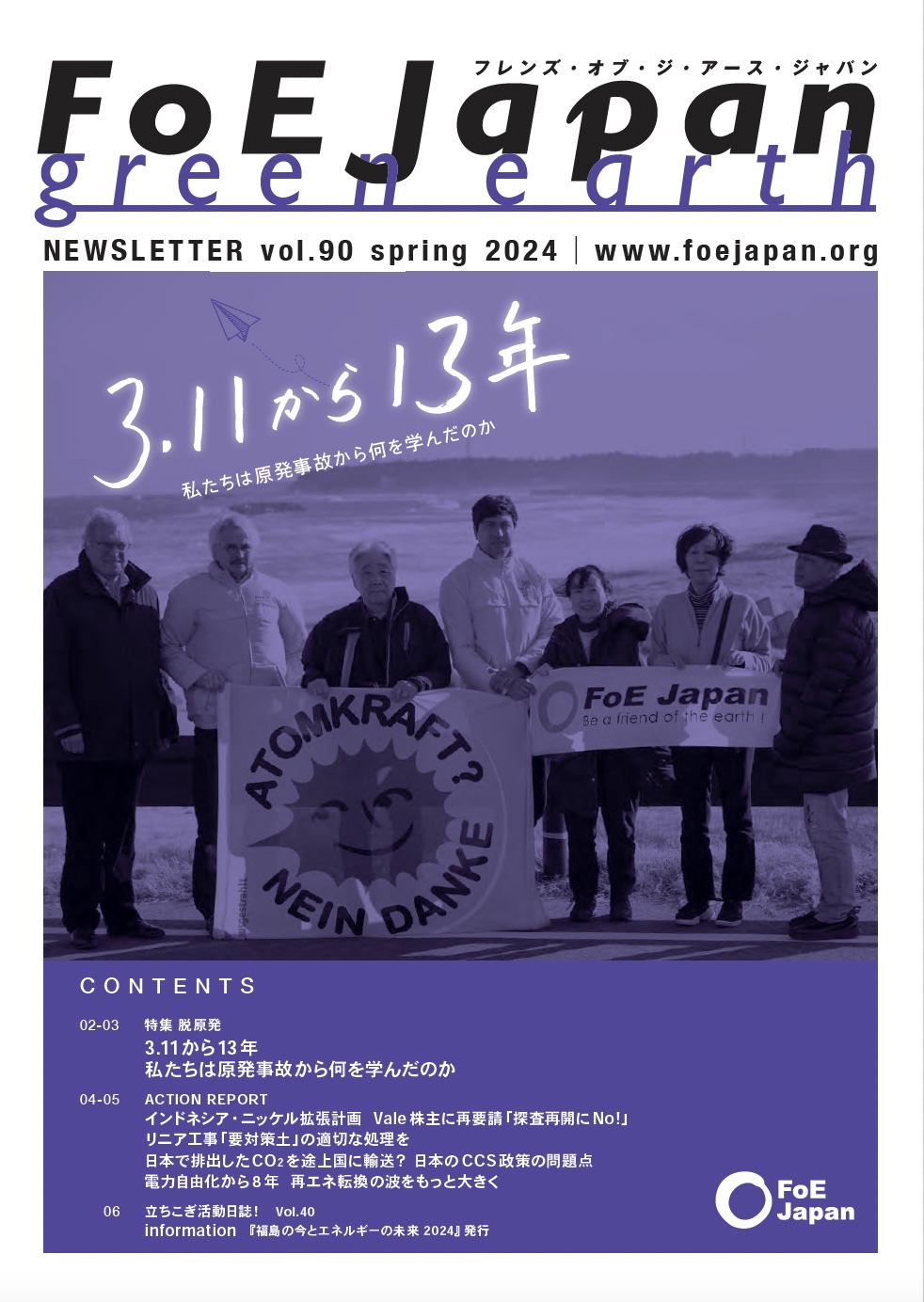 インドネシア・ニッケル拡張計画 Vale 株主に再要請「探査再開にNo!」/リニア工事「要対策土」の適切な処理を/日本で排出したCO2 を途上国に輸送? 日本のCCS政策の問題点/電力自由化から8年 再エネ転換の波をもっと大きく