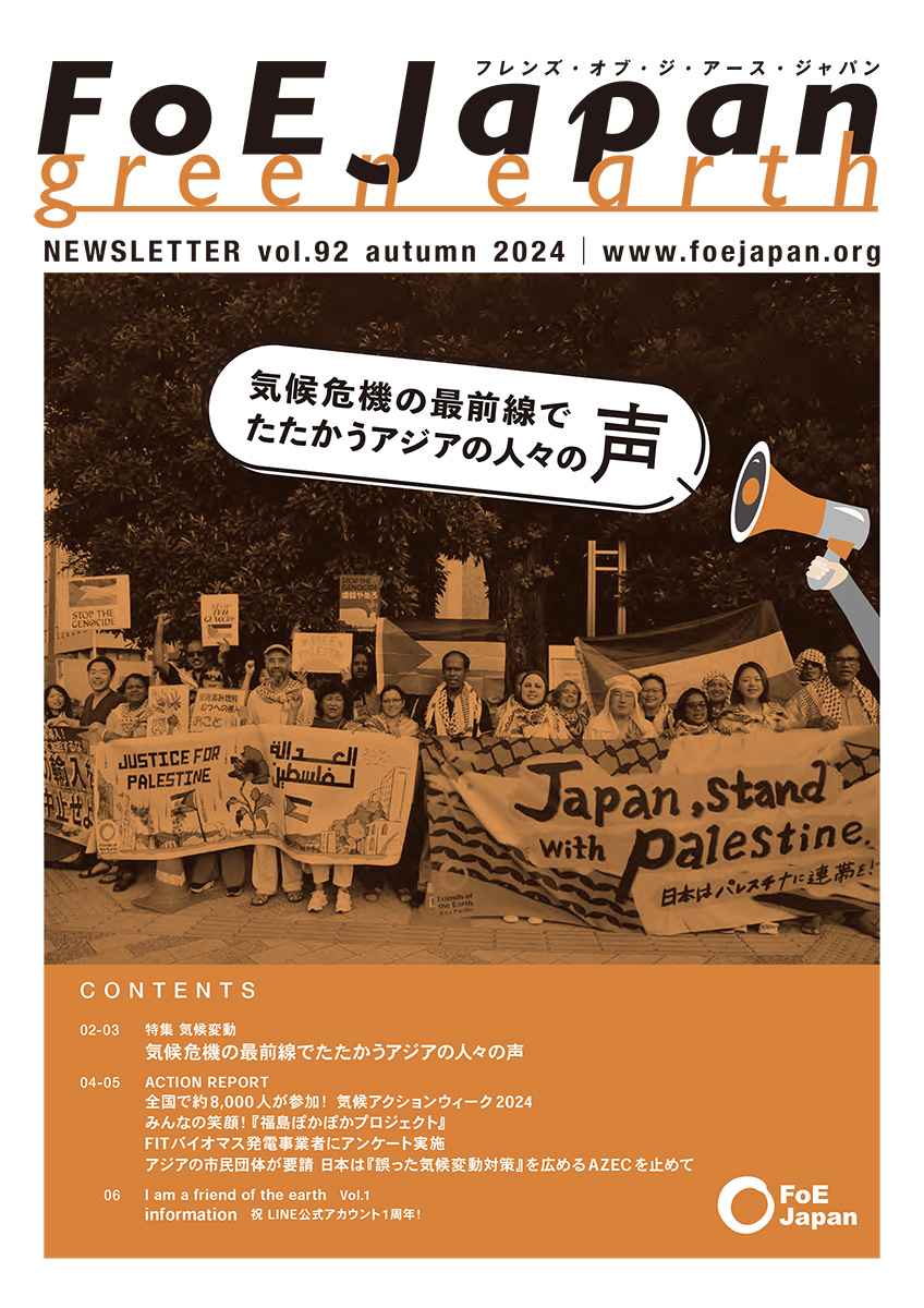 全国で約8,000人が参加!気候アクションウィーク2024/みんなの笑顔!『福島ぽかぽかプロジェクト』/FIT バイオマス発電事業者にアンケート実施/アジアの市民団体が要請 日本は『誤った気候変動対策』を広めるAZECを止めて