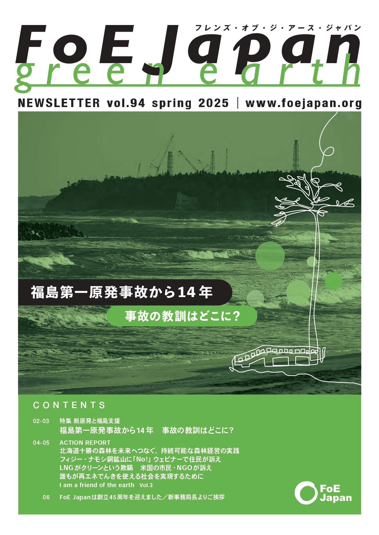 地域に「核のごみ」を押し付けるな むつ市 核燃料中間貯蔵施設をめぐって/フィリピンから漁師・NGOが来日し、日本の化石燃料支援に抗議/森林を使いながら守る 北海道・十勝の生物多様性/温暖化対策法改訂に関し、参議院環境委員会で意見陳述